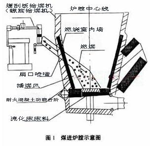 由于噴嘴裝在進煤口的底部,播煤風就沿著進煤口底部噴入爐膛燃燒室。這樣播煤風對燃煤起到“支撐”作用,燃煤是懸浮在播煤風上面而被“托”進燃燒室的,因而它輕松越過床料的“死區(qū)”而被拋入流化床床面內(nèi)。同時播煤風風速很高,對燃煤又起了均勻撒播的作用,使燃煤與床料充分混和,有利于其充分燃燒,大大提高了鍋爐運行的經(jīng)濟性。